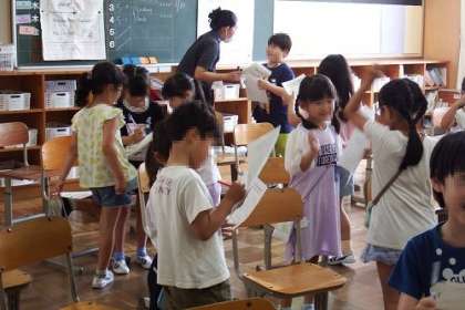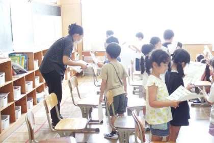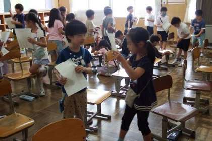 「Hello!」「My name is 〜 .」「Nice to meet you.」友達にあいさつをして、自分の名前を紹介する活動を行いました。次から次へと楽しそうに英語であいさつをしていく子どもたちでした。