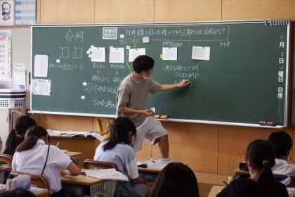 算数「合同な図形」で、四角形を対角線で切った形について考えました。長方形や平行四辺形、台形を対角線で切った三角形の形は・・・・合同?