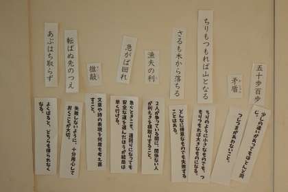 7/14 4年生こんな掲示物が 公開日 2023/07/14 更新日 2023/07/14 お知らせ 4年生の廊下に、こんな掲示物が貼られていました。国語で学習した「ことわざや故事成語」の数々です。意味は分かったかな。