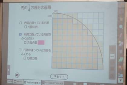 算数で方眼を使って、円のおよその面積を求めました。今日の学習が、円の面積の公式の学習につながっていきます。