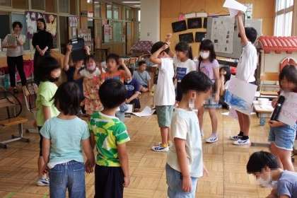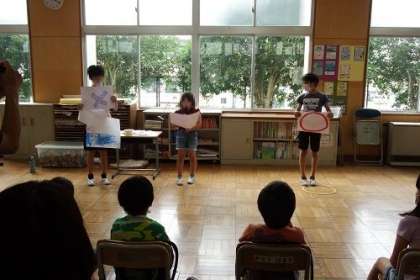 準備を進めてきた夏のクイズ大会を実施しました。低学年の子どもたちが問題を出題したり、高学年の子どもたちが出題したり、それぞれに応じた問題の工夫がされていました。みんな、楽しそうに参加することができました。
