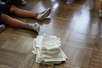夏休みを前に、お楽しみ会を行いました。この日は、「紙つみあげゲーム」と「いつどこでだれが何をしたゲーム」です。紙4か月、同じ教室で過ごした友達と楽しいひと時を過ごすことができました。