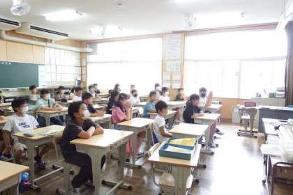 今日は出校日。クラスの友達ともの久しぶりの再会。夏休み中にあったことを語り合う姿や、1カ月ぶりの再会を喜び合う姿がありました。提出物を出したり、レクリエーションをしたり、夏休み中にあったことのお話を聞いたり、9月の行事に向けて気持ちを高めたり・・・。夏休みもあとわずかです。健康に気をつけながら、楽しい時を過ごしてください。写真は、5年生の様子です。