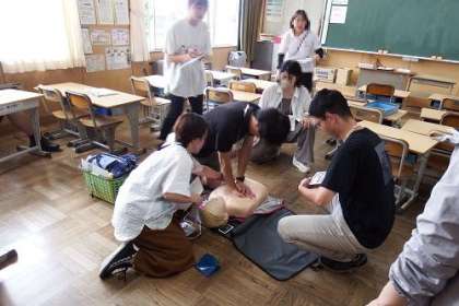 学校で発生する子どもたちの事故への対応研修を行いました。東海学園大学の石田先生を講師としてお招きし、事故発生時の具体的な対応方法や心肺蘇生、AED、エピペン、異物除去などの研修に臨みました。