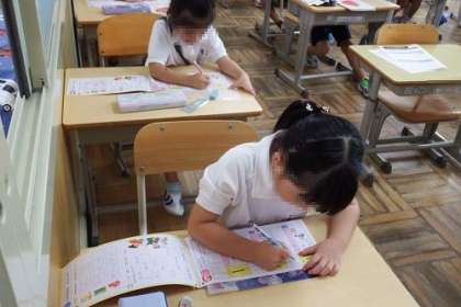 いよいよ国語で漢字の学習を始めました。一、二、三。まずは数字からです。漢字ドリルも使って、書き方も覚えていきます。