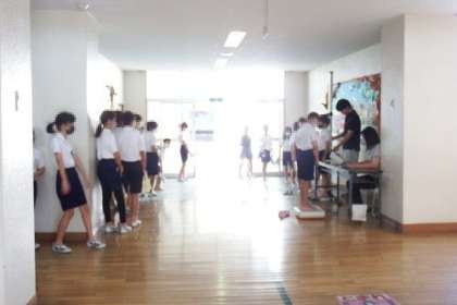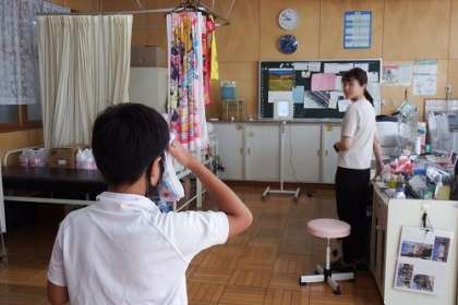 今週は、身体測定を実施しています。身長と体重、視力を測定しています。4月と比べてどうなっているでしょうか。視力は落ちていないでしょうか。自分の順番を待っている時も、静かに待つことができています。