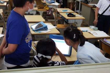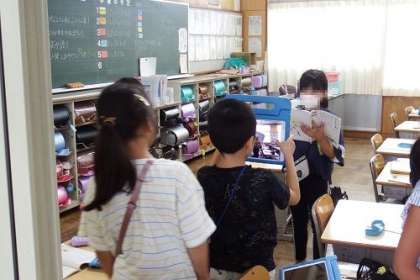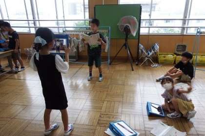 国語で、音読発表会をグループごとに行いました。音読の様子を、タブレットで録画し、見直します。自分の音読を振り返ることができました。
