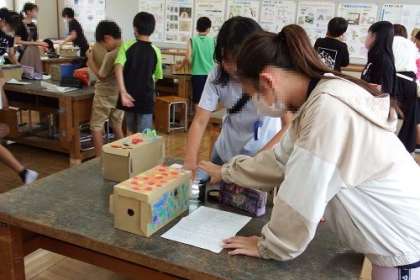 図工「のぞいてみれば」の作品が完成に、鑑賞会を行いました。友達の作品の良いところや工夫してあるところをたくさん見つけることができました。鑑賞する態度もとても素晴らしかったです。