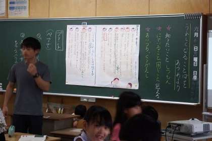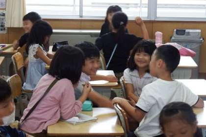 「わたしが言われてうれしかったことばは、ありがとうです。」国語「うれしくなることばをあつめよう」では、ことばをつないで友達と話し合うことを学びます。