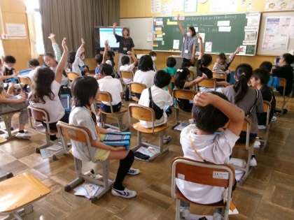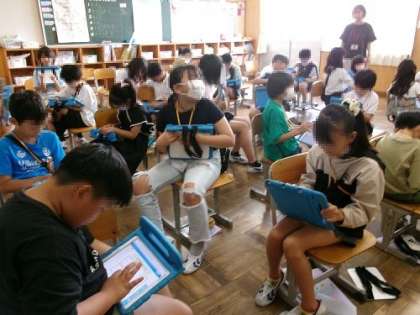 子どもたちがもっている文房具について、尋ねたり答えたりする学習に取り組みました。「Do you have a 〜 ?」「Yes,I do/No,I don't」消しごみや鉛筆削り、のりなどの呼び方も分かりました。