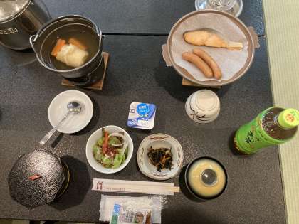 今日の朝食の様子です。もりもり食べて、一日元気に活動します。