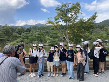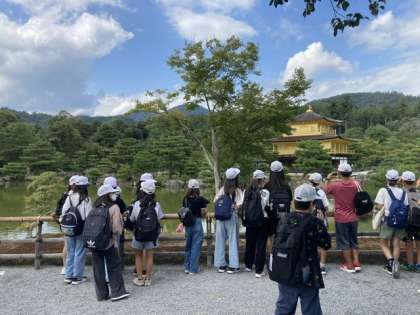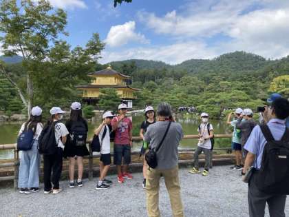 クラス別に金閣を訪ねました。金閣は、金色に輝いています。