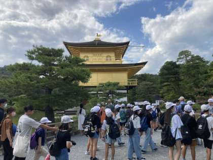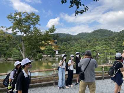 金閣をバックにたくさん写真を撮りました。