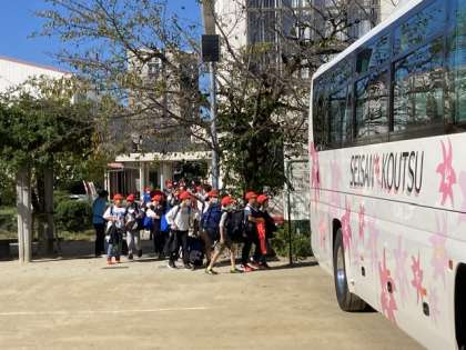 大きな荷物を持って、バスに乗り込みます。気持ちはワクワク。
