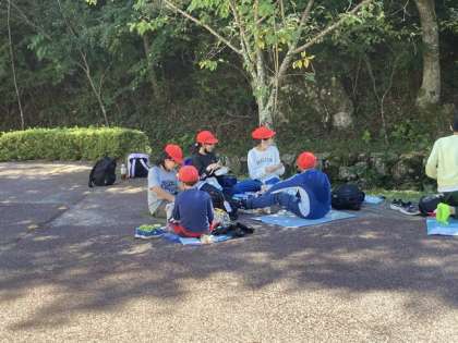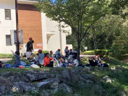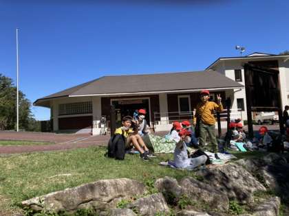 野外センター前の出会いの広場の横を小川が流れています。カニを捕まえてくる子もいます。