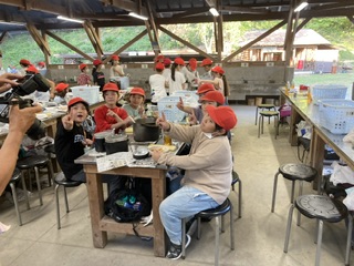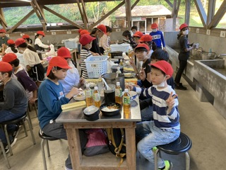 カレーライスの出来上がりです。やっぱり自分たちで作ったカレーは、美味しいです。