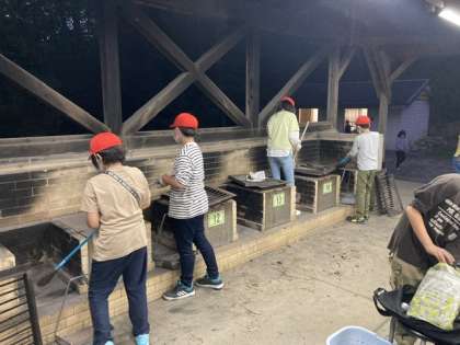 みんなで協力して野外炊事の片付けを行いました。楽しい時間をたくさん作るために、みんな一生懸命です。