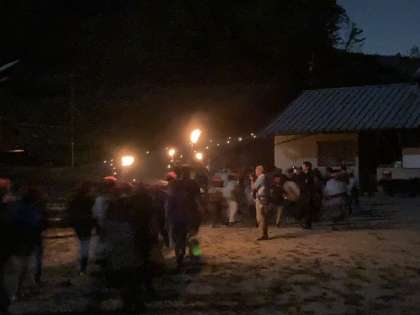 キャンプファイヤーが終わり、キャンドルロードを静かに帰ります。楽しい思い出を胸に。