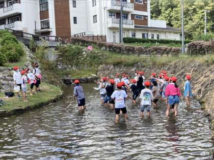 じゃぶじゃぶ池では、フリスビーキャッチ。