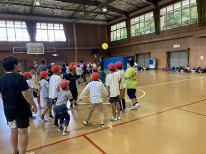 スポレク大会の最後は、学年みんなで、風船バレーを行い、楽しみました。