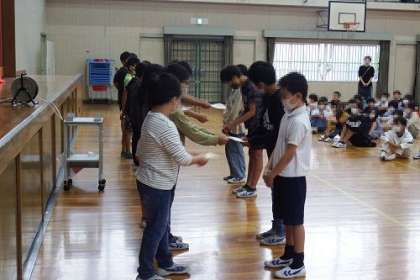 5年生は、先週の金曜日と土曜日にキャンプを行いました。その時に実施したゴリエンテーリングやスポレク大会の表彰を、学年で行いました。楽しかったキャンプのことが、子どもたちの胸によみがえってきました。