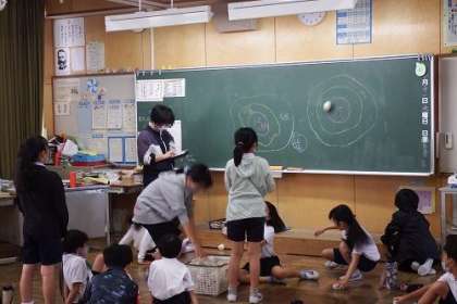 なかよし集会を行いました。久しぶりになかよしグループのメンバーとの再会。クイズや伝言ゲーム、的当て、だるまさんがころんだなど、6年生の子どもたちが考えたゲームを、みんなで楽しみました。笑顔あふれる時間になりました。