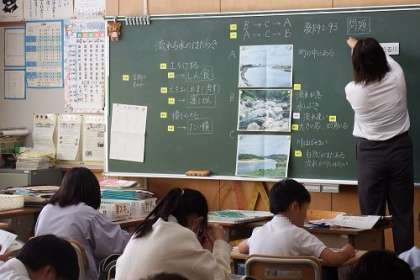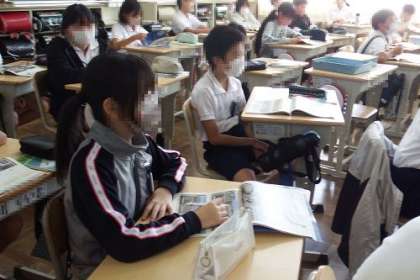 理科「流れる水のはたらきと土地の変化」の学習で、流れる水の速さと川原の石の大きさや形の関係を調べました。山の中を流れる川、平地に流れ出た川、平地を流れる川を比較しました。