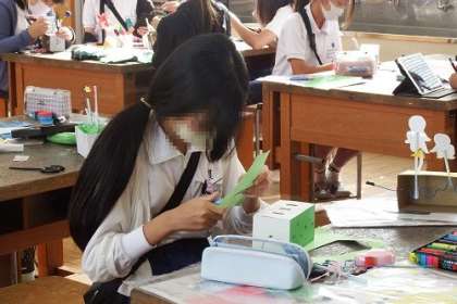 図工「くるくるクランク」を、各クラスで取り組んでいます。動きがある作品を作り出すのはとても難しいです。最初の企画段階がとても大切です。