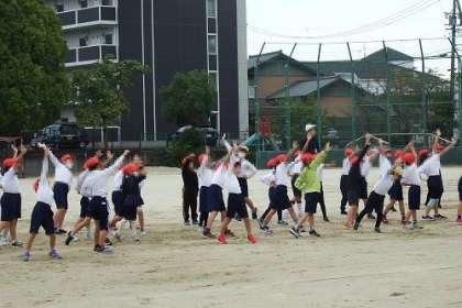 2年生の運動会練習の様子です。体をいっぱいに使いながら、リズムにのって表現します。