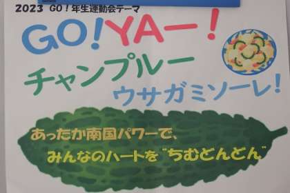 5(Go)年生の運動会のテーマは・・・・。楽しいテーマとともに、みんなのパワーでハートをつかみとろう。笑顔で踊る子どもたちがとても素敵です。