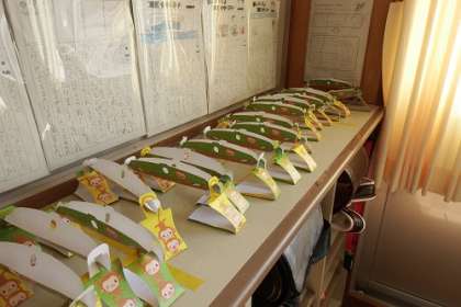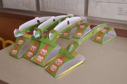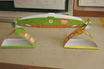 算数「重さ」の学習で作ったてんびんです。教科書についていたものを利用しました。可愛いおサルのてんびんです。