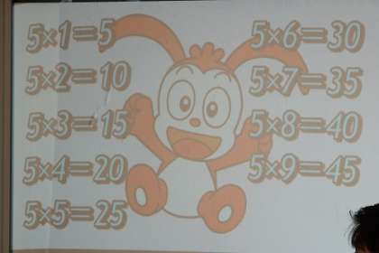 いよいよ九九の学習に入りました。この日は、5の段。動画や音楽に合わせて5の段を覚えていきます。九九マスターになってくださいね。