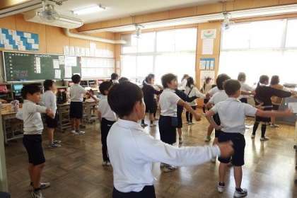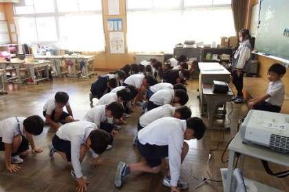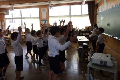 一通り通せるようになった演技。もう一度、自分たちの演技をビデオを見て、振り返ります。子どもたちは意外と冷静。足りないところをきちんと指摘します。完成を目指してあと少し。