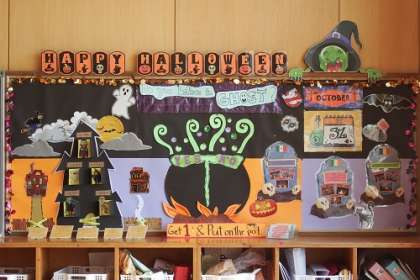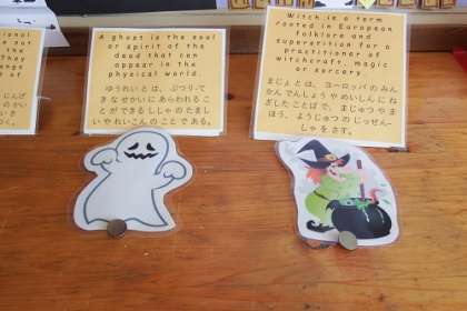 ハロウィンに向けて、英語ルームの掲示が刷新。可愛いお化けやかぼちゃがいっぱいの魅力的な掲示に生まれ変わりました。