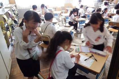 後期の係活動の準備。後期は、どんな係になったのかな。どんな活動をするのかな。協力し合って、掲示物を作ります。