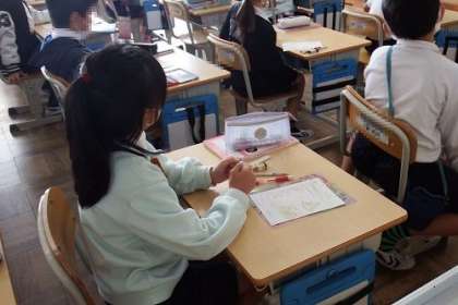算数「面積」の学習を継続しています。この日は、長方形や正方形ではない図形の面積を、分けたり、つぎたしたりしながら、求める問題に取り組みました。