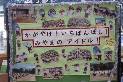 運動会に向けて作った学年掲示板の「みやまのアイドル」練習や本番の時にとった子どもたちの写真がいっぱいになりました。アイドルがいっぱいです。
