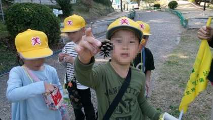 生活科で、深田公園へ出かけ、秋を見つけてきました。出発前からみんなワクワク。現地について面白い形の葉っぱに興味を示す子や、小さな虫を見つけて教えてくれる子もいました。どんぐりや松ぼっくりもたくさん集めてきました。