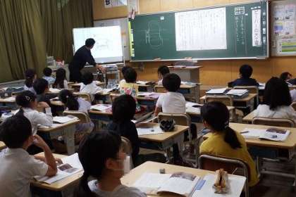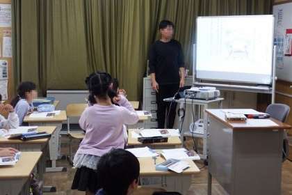 写真は、国語「ビーバーの大工事」の学習の様子です。本文の読み取りが終わり、これから動物クイズをつくっていきます。子どもたちも、やる気満々です。