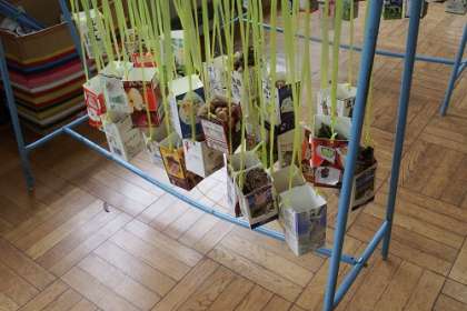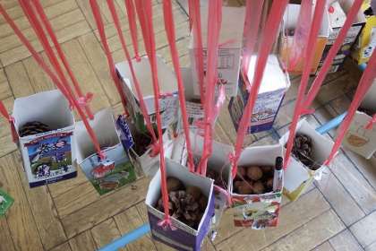 子どもたちが見つけてきた秋は、現在、牛乳パックの箱の中に入れて、広場に置かれています。さて、これを使って次は何をしようかな。楽しみは広がります。