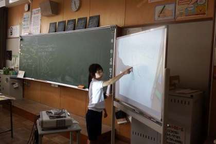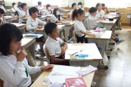 「半径3センチメートルの円をかきましょう。円の中にいくつも直線をひいて、長さを調べましょう」円の半径を知った子どもたち。そこから直径について学習しました。