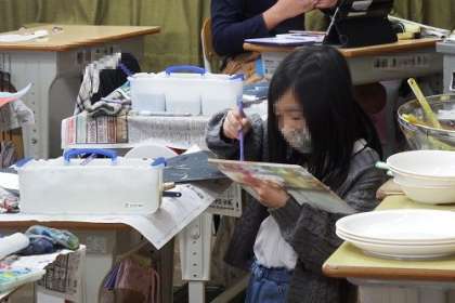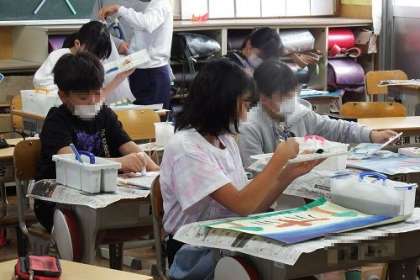 5年生の図工で読書感想画「よだかの星」を制作中!