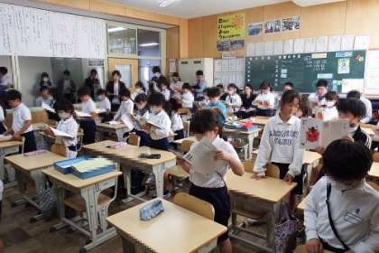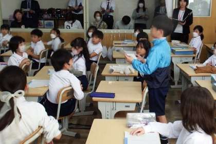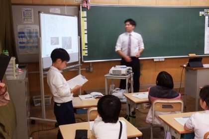 国語「ビーバーの大工事」で、研究授業を行いました。この日は、自分の考えた動物のクイズをつくる前段階です。ビーバーの大工事の文章を使って、自分の「すごい」を見つけ、クイズをつくりました。