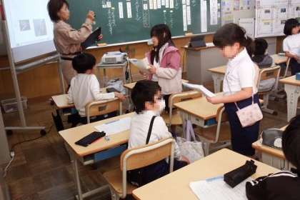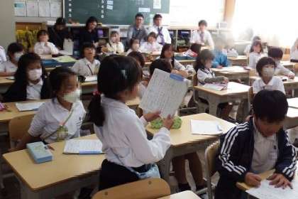 国語「ビーバーの大工事」で、研究授業を行いました。この日は、自分の考えた動物のクイズをつくる前段階です。ビーバーの大工事の文章を使って、自分の「すごい」を見つけ、クイズをつくりました。
