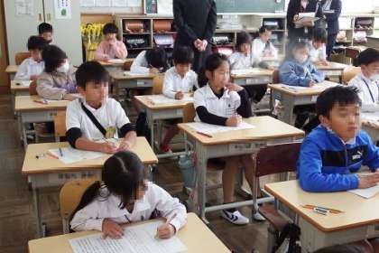 全校で授業研究を実施しました。国語の説明文の授業を、各学年で行いました。1年生から順番に系統的に学習を積み上げていく大切さがよく分かりました。写真は、2年生「同じところ ちがうところ」の学習の様子です