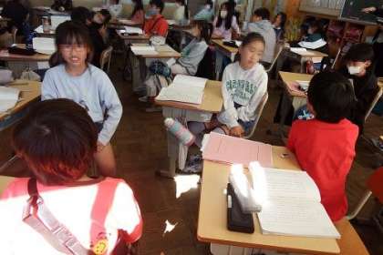 全校で授業研究を実施しました。国語の説明文の授業を、各学年で行いました。1年生から順番に系統的に学習を積み上げていく大切さがよく分かりました。写真は、4年生「くらしの中の和と洋(究きょくの選たく)どちらがお好みプレゼンを作ってしょうかいしよう」の学習の様子です。