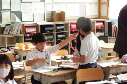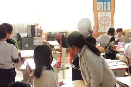 算数「分数」の学習に入りました。この日は、紙テープを使って、「1メートルのテープを同じ長さにおって、あまりの長さを表す」学習をしました。