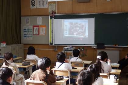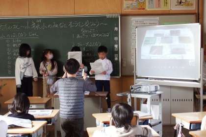 「美山小学校の学区のおすすめは・・・・・」おすすめの場所やなぜおすすめなのか、地域の方のインタビューなどを交え、詳しく説明することができました。小清水小学校の子どもたちの素敵な発表を真剣に聞くことができました。初めての試みでしたが、とてもよい交流会でした。