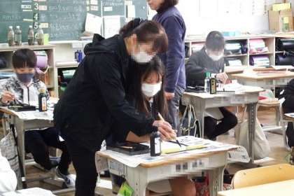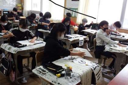 6年生は、今年が最後の書初めです。文字は、「三河の城」今まで学習してきたことを振り返りながら、一文字一文字丁寧に練習しています。