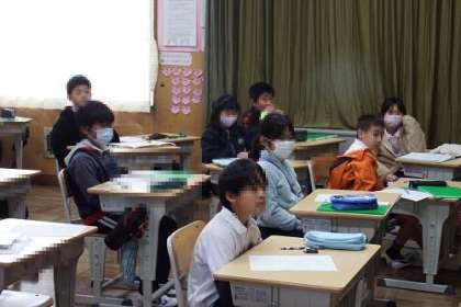 総合的な学習で取り組んでいる「やさしさ はっけん」の発表会を行いました。演じている子ともたち、それを見ている子どもたち、みんな真剣そのものです。